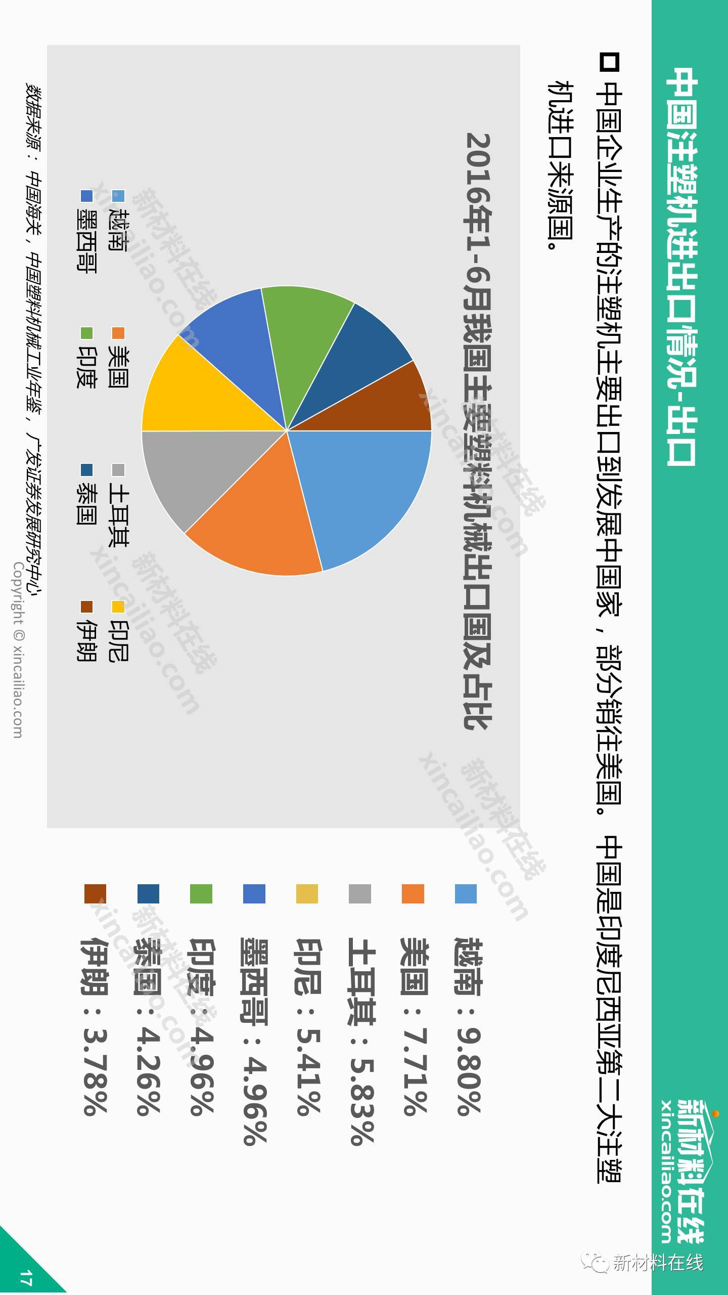 2016年,塑料行业的工业总产值就达3.5万亿,业已进入世界大国行列。受惠于此,中国成为全球最大的塑机消费国,消费额占全球市场的20%左右,各跨国公司纷纷看好这片巨大的消费市场。